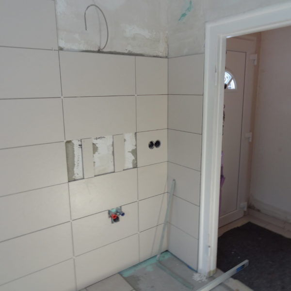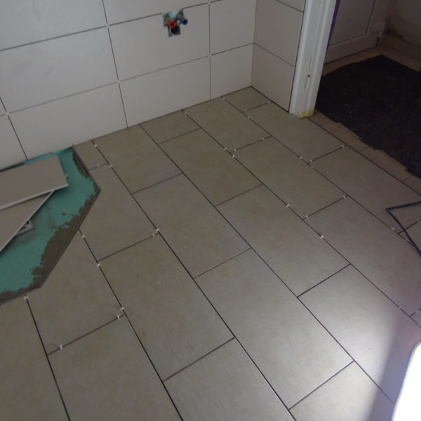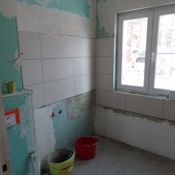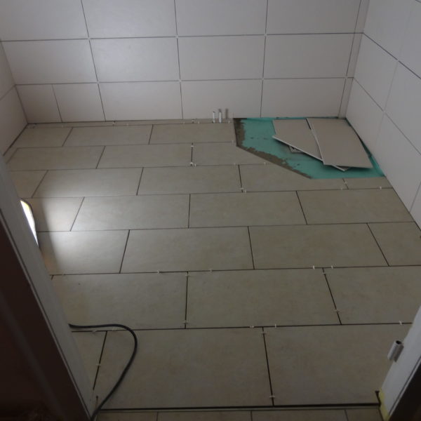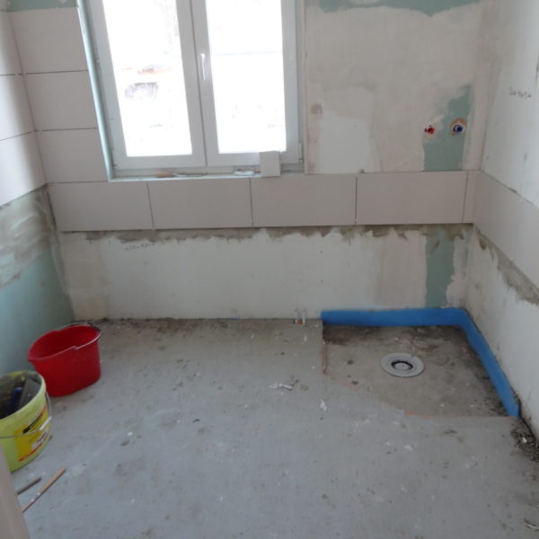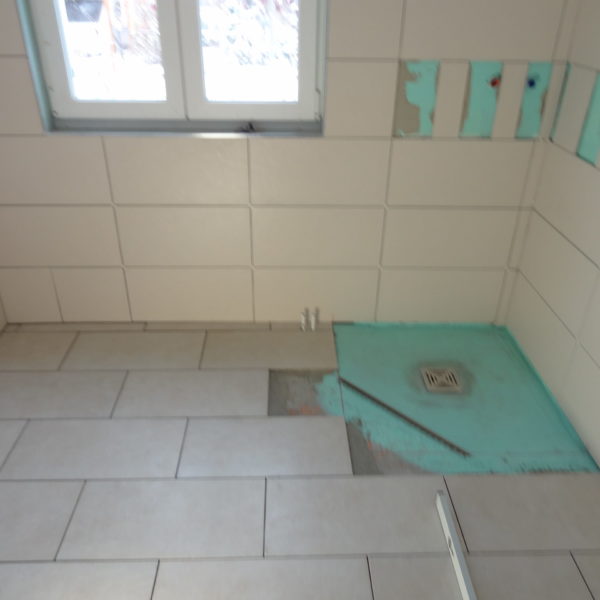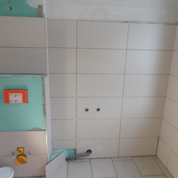 Angefallene Arbeiten: Ständerwerk mit Rigipsplatten Fliesenlegearbeiten Wand und Boden Bodentiefe Dusche setzen Waschbecken montieren Vorwand WC montieren Project navigationNextNext project:Außenanlage pflastern