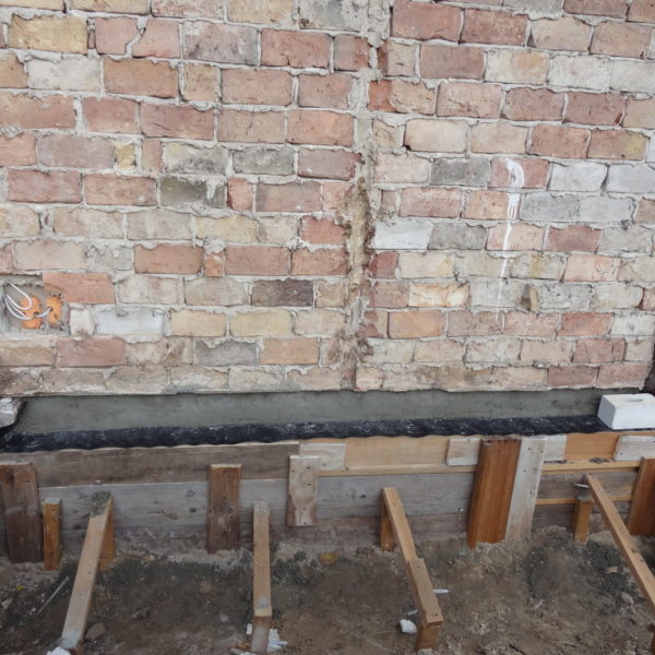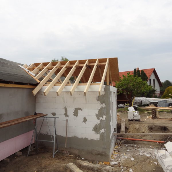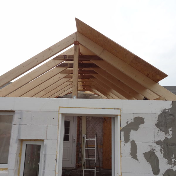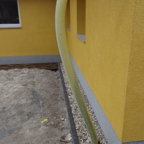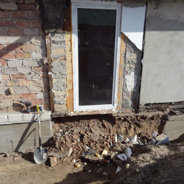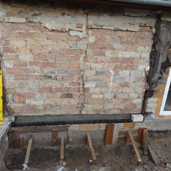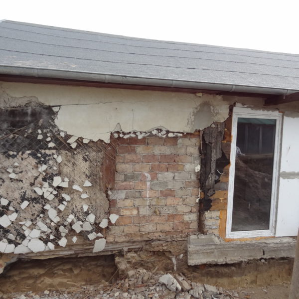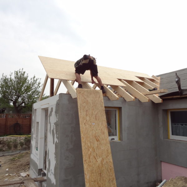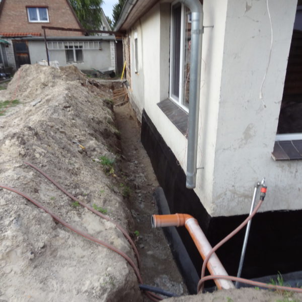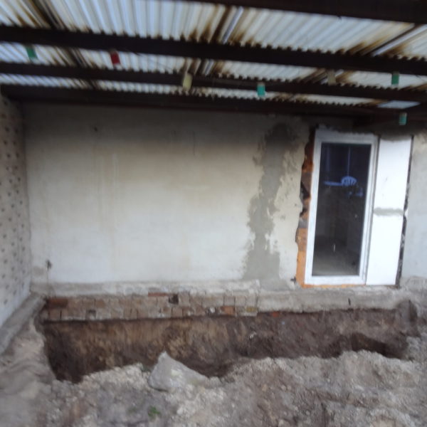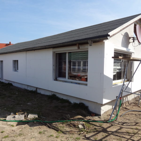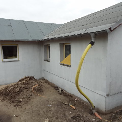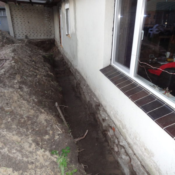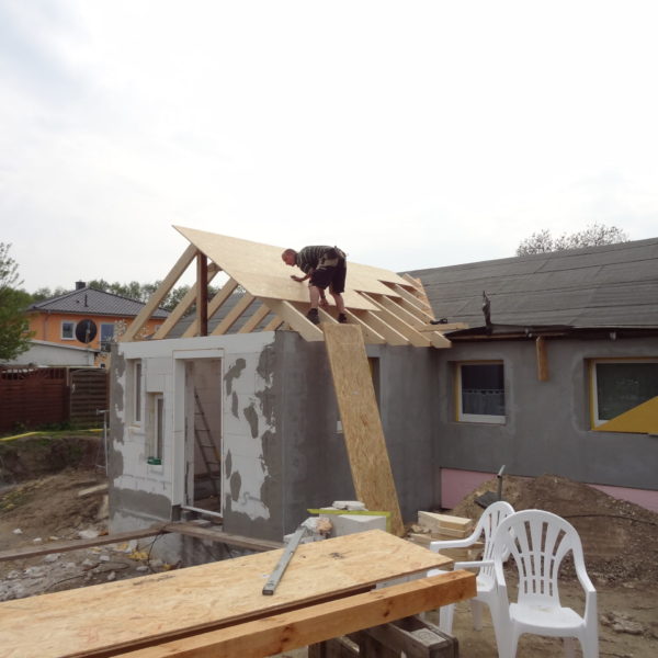 Angefallene Arbeiten: Haus isolieren mit Bitumen Eingangsbereich mauern Eingangsbereich Dach setzen Haus dämmen Haus außen verputzen Haus streichen Kieselbett um das Haus anlegen Außenanlage pflastern Eingangsbereich Absatz setzen Project navigationNextNext project:Außenanlage pflastern